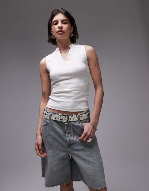 Topshop - Ecrufarvet tanktop med V-hals og knapper