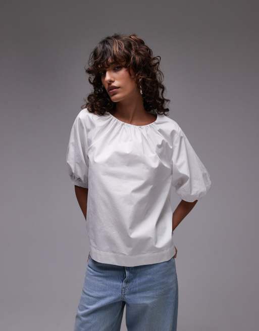 Topshop - Elfenbensfarvet top i poplin med pufærmer