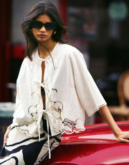 Topshop - Femme - Hvid jakke med udskåret mønster - Del af sæt