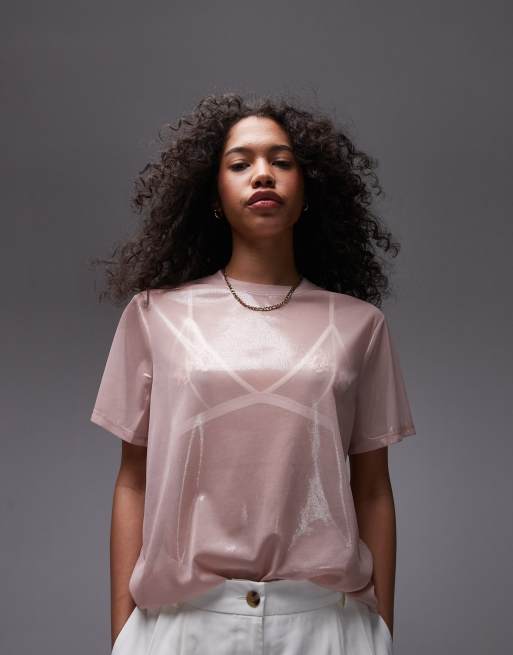 Topshop - Gennemsigtig T-shirt i metallisk lyserød