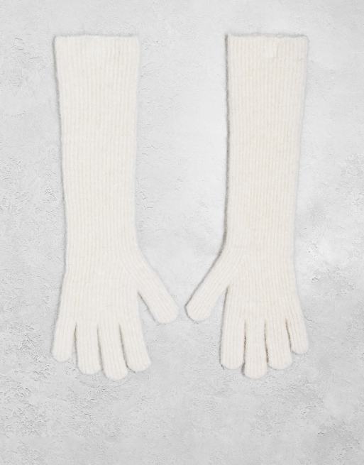 Topshop - Ginny - Premium - Cremefarvede ribstrikkede handsker i alpakablanding