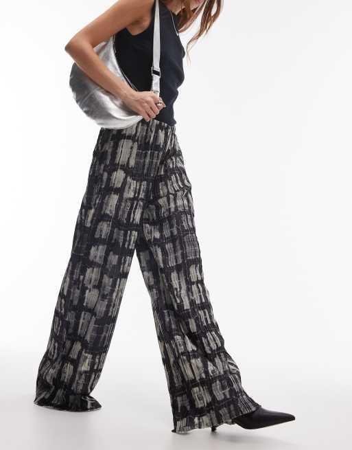 Topshop - Grå ternede bukser med vidde og plisseringer