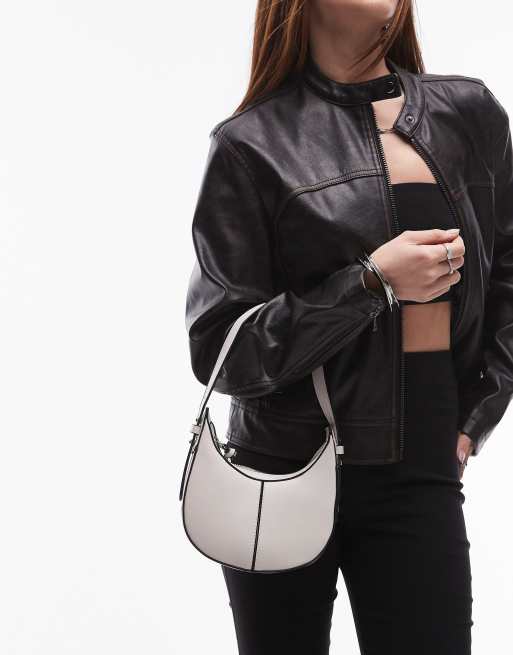Topshop - Gracie - Mini-håndtaske med dybt, rundt design og kontrasterende sømme i råhvid