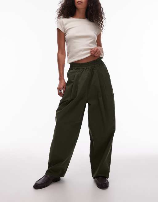 Topshop - Grønne joggingbukser med elastisk talje og plisseringer i ballonpasform