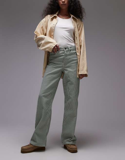 Topshop - Grønstribede jeans med løs pasform og lige ben samt mellemhøj talje