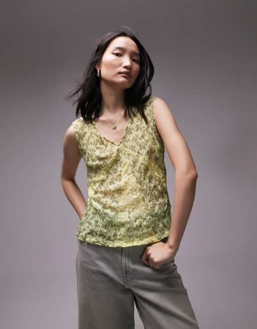 Topshop - Gul tanktop i krølstof med småblomstret print
