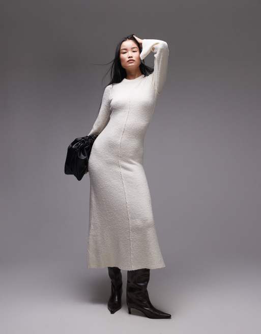 Topshop - Havrefarvet maxikjole i strikket bouclé