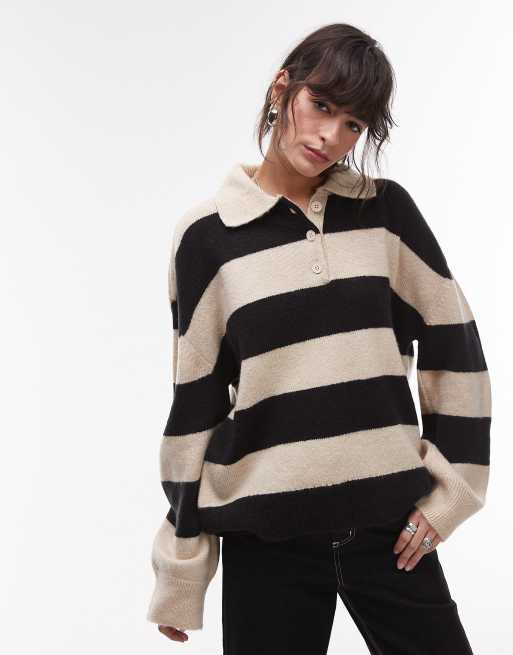 Topshop - Havrefarvet strikket polotop