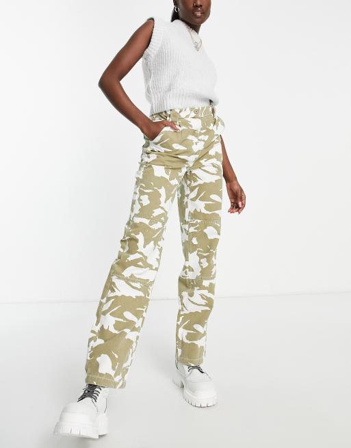 Topshop - Højtaljede utility-bukser med lige ben og syninger på knæet i camouflage-print