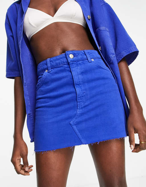 Topshop - Højtaljet denimnederdel i kobolt - Del af sæt
