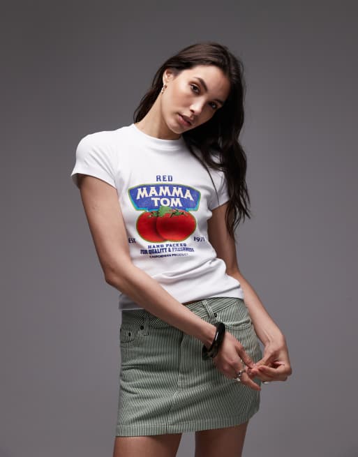 Topshop - Hvid basis-T-shirt i jersey med grafisk Mamma Tom-print