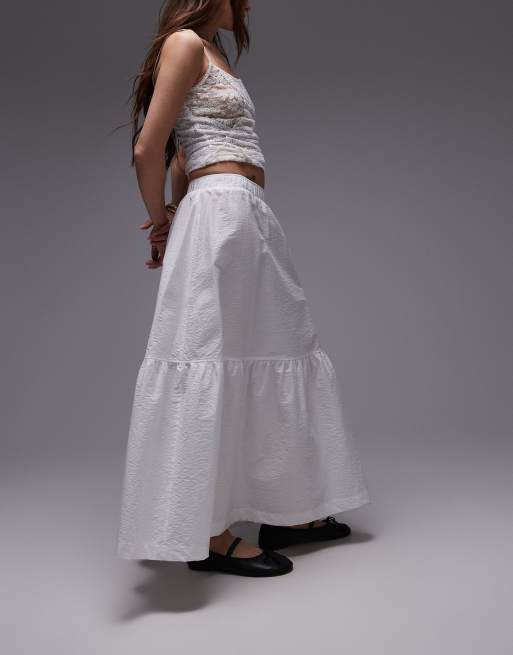 Topshop - Hvid lagdelt midinederdel i bomuld