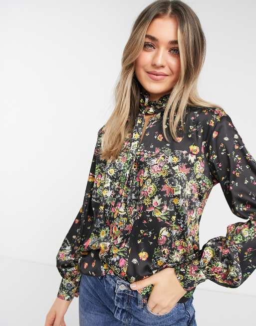 Topshop - Idol - Højhalset bluse i multifarvet blomstermønster