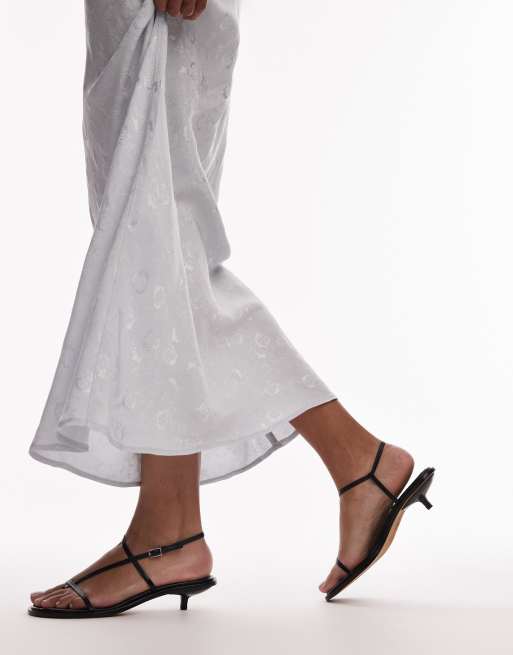 Topshop - Inaya - Sorte sandaler i premium-læder med stropper og kitten-hæl