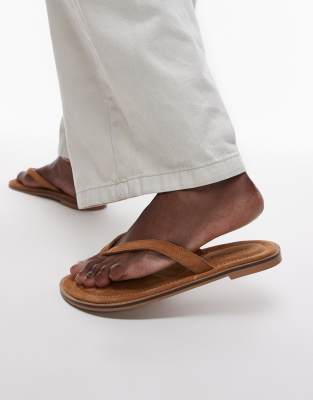 Topshop - Jay - Gyldenbrune flade sandaler med tårem i ægte ruskind