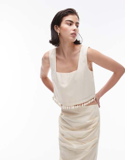 Topshop - Kærnemælksfarvet croptop med muslingekant - Del af sæt