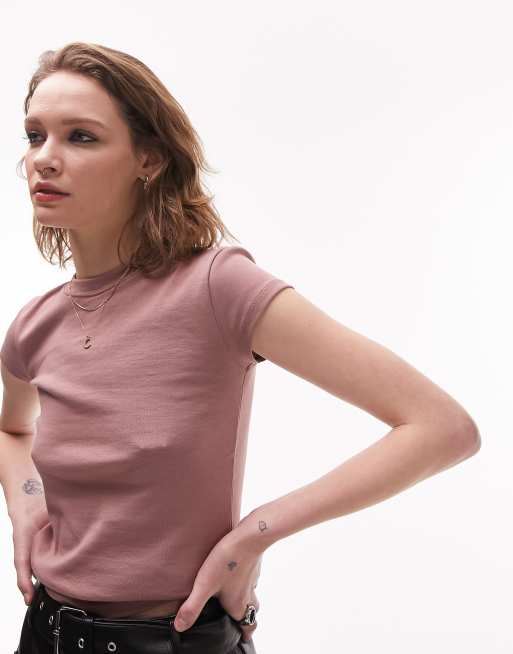 Topshop - Lang basis-T-shirt i støvet rosa