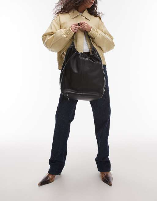 Topshop - Lennox - Sort totebag i ægte læder med rynkedetalje