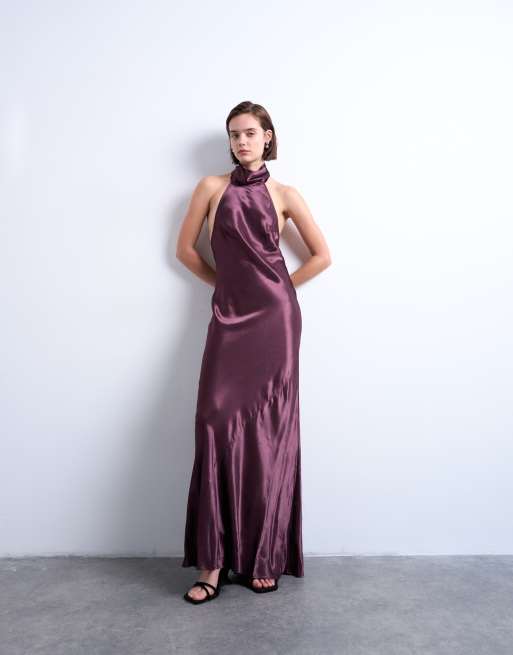 Topshop - Lilla halterneck-maxikjole med bindebånd i halsen
