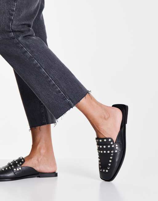 Topshop - Lotus - Sorte loafer-mules med nitter i læder