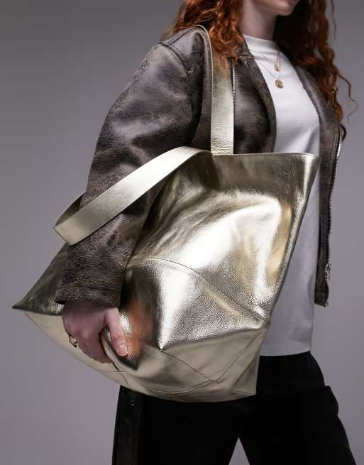 Topshop - Lucy - Guldfarvet oversized tote-taske i læder