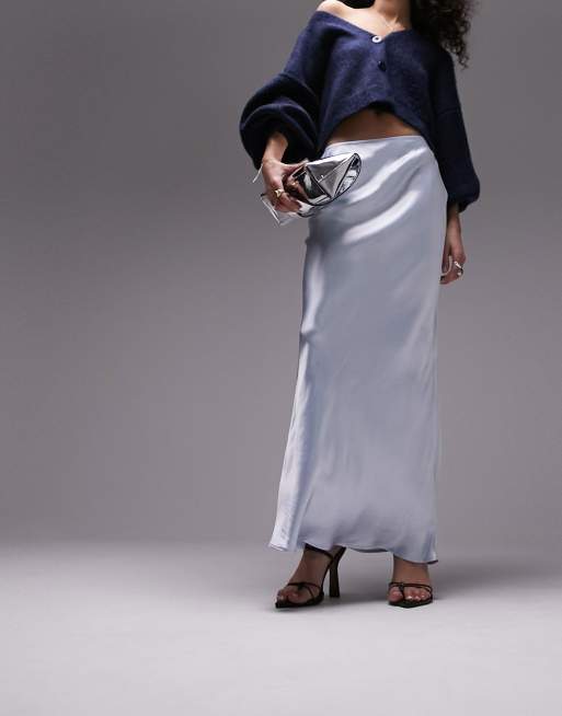 Topshop - Lyseblå maxinederdel med skråsnit i satin