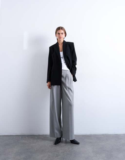 Topshop - Lysegrå højtaljede skræddersyede bukser med to læg