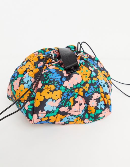 Topshop - Makeuptaske med løbesnor i flerfarvet blomstermønster