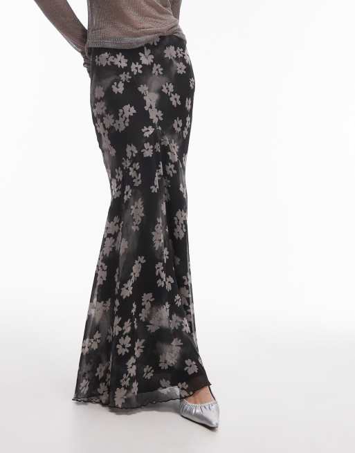 Topshop - Maxinederdel med monokromt blomstermønster og indsyede detaljer i V-snit