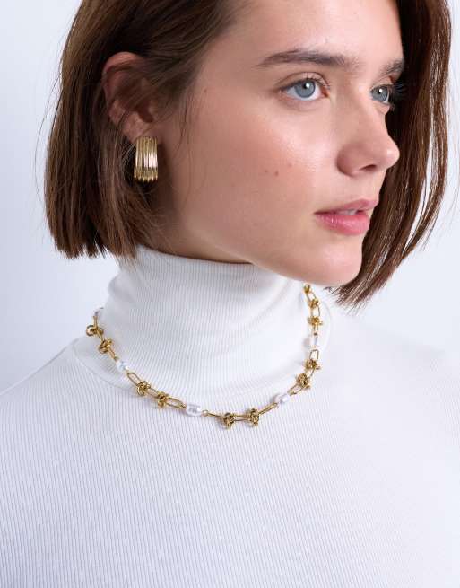 Topshop - May - Guldfarvet halskæde i rustfrit stål med perler