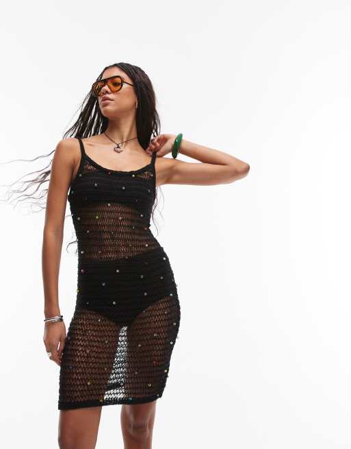 Topshop - Minikjole med farverige perler i hulstrik