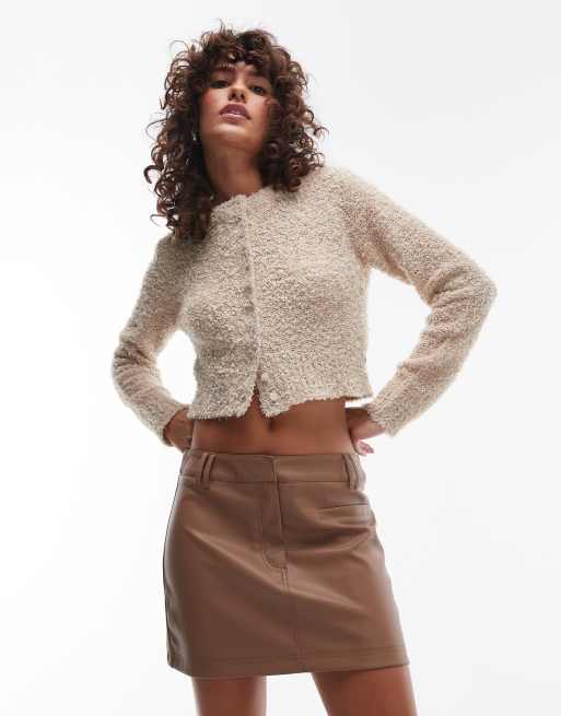Topshop - Mokkabrun skræddersyet mininederdel i imiteret læder
