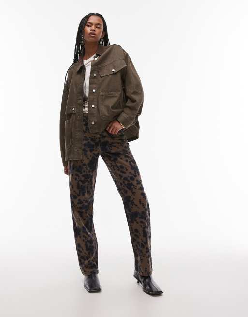 Topshop - Multifarvede bukser med lige ben og dyreprint