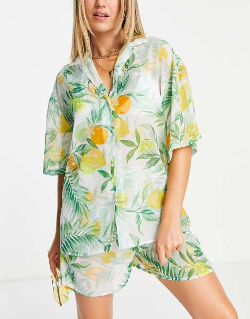 Topshop - Multifarvet gennemsigtigt strandsæt med frugtprint