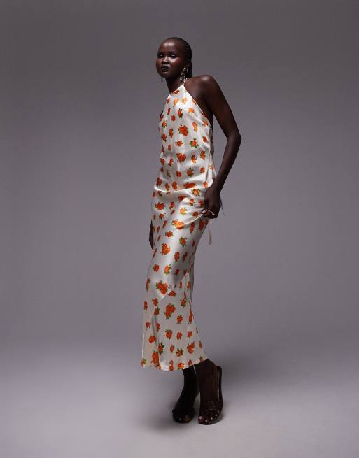 Topshop - Multifarvet halterneck-maxikjole med orange roseprint