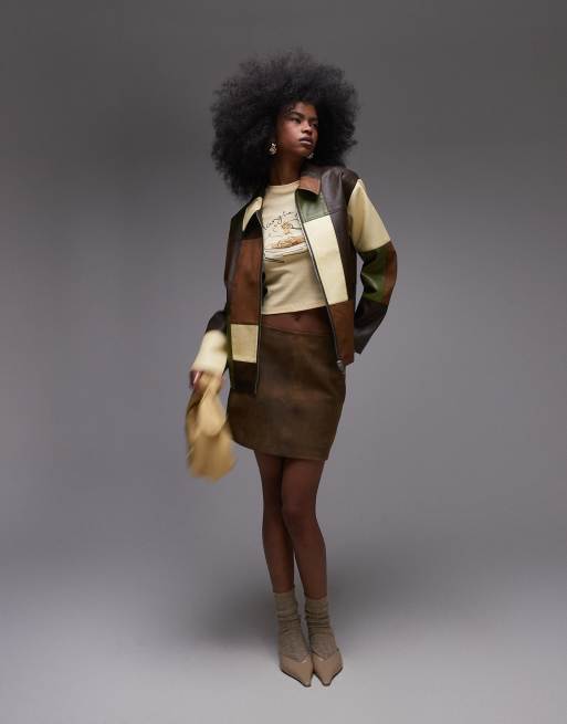 Topshop - Multifarvet jakke med kontrasterende panel og lynlås i imiteret læder