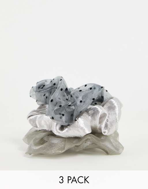 Topshop - Multipakke med 3 organza-scrunchies i sølvfarvede nuancer