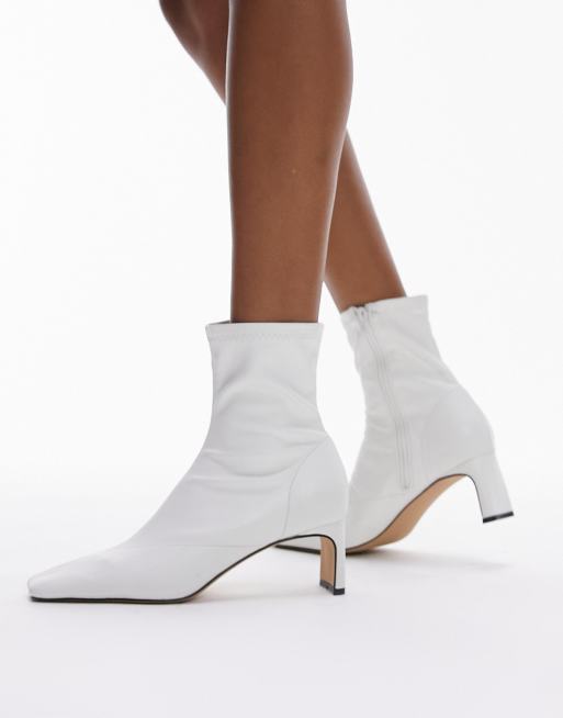Topshop - Naomi - Hvide sokkestøvler med firkantet tå og mellemhøj hæl