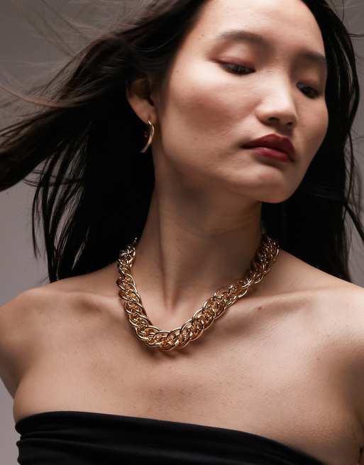 Topshop - Nico - Guldfarvet halskæde med stor panserkæde