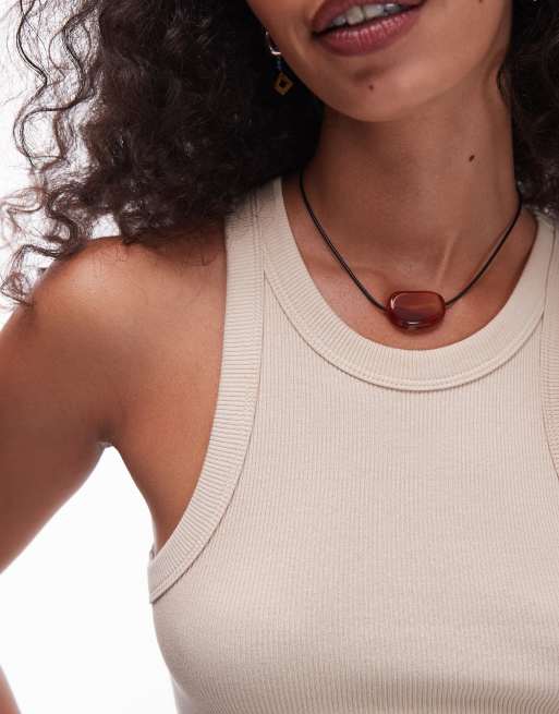 Topshop - Nora - Choker-halskæde med rebdesign og smykkesten i brændt orange