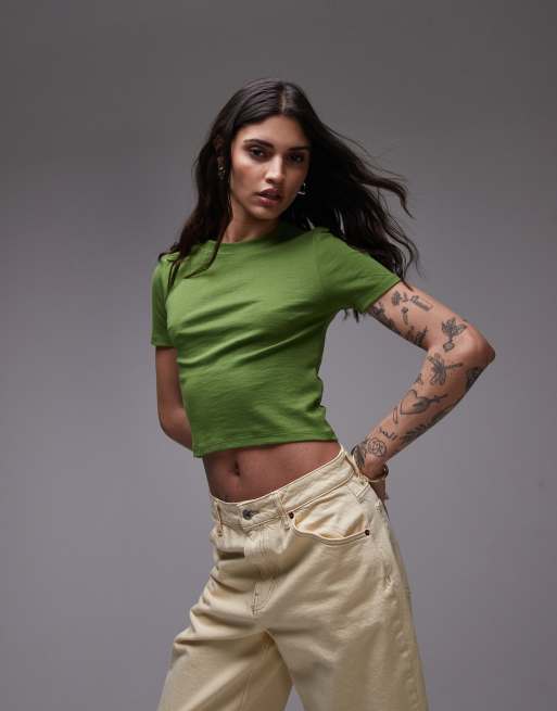 Topshop - Olivengrøn krympet hverdags-T-shirt