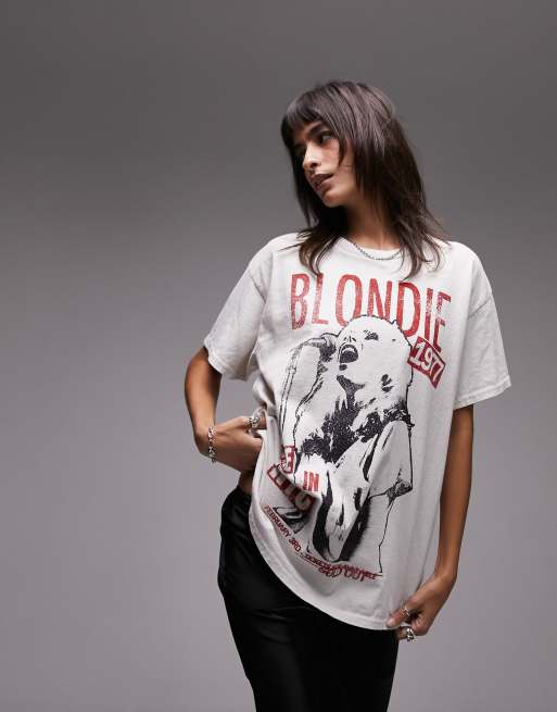 Topshop - Oversized ecru T-shirt med licenseret "Blondie Live in NYC"-grafik