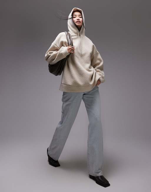 Topshop - Oversized og beige hættetrøje i teddy-stof