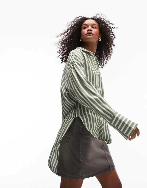Topshop - Oversized skjorte med striber i grøn og råhvid