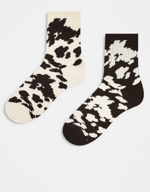 Topshop - Pakke med 2 par sporty ribstrikkede sokker med cremehvidt/chokoladebrunt koprint
