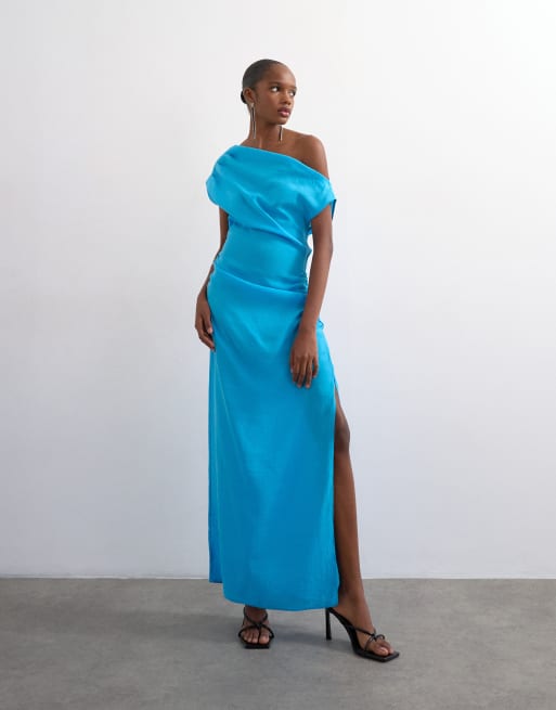 Topshop - Pangblå midikjole med ud-i-et-skuldre og blød finish