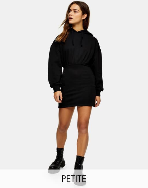 Topshop Petite - Sweat-minikjole med hætte i sort