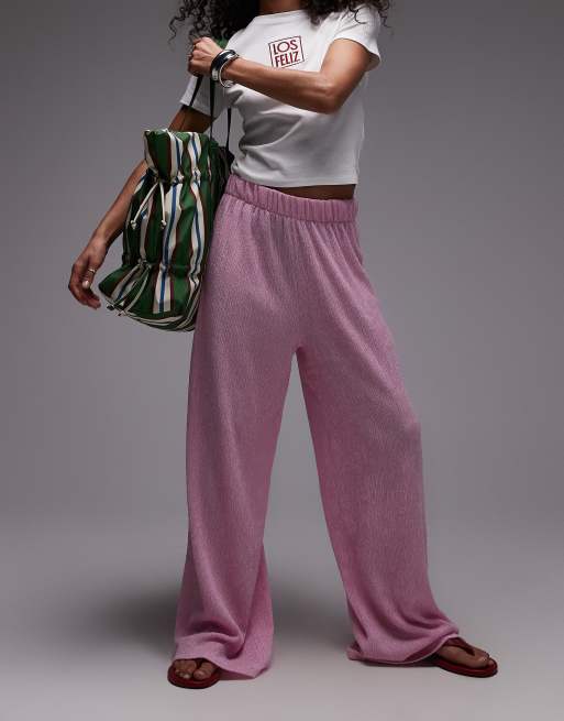 Topshop - Pink bukser med brede ben og tekstur