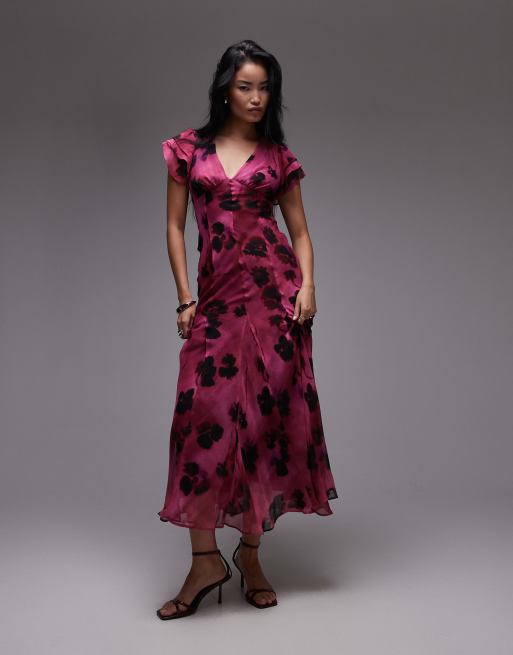 Topshop - Pink maxikjole til særlige lejligheder med snøredetalje på ryggen og basis-blomstermønster