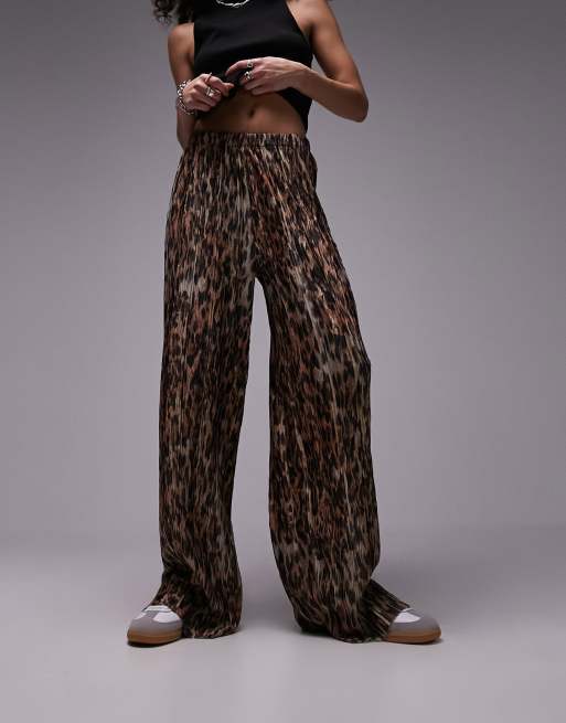 Topshop - Plisserede bukser med lige ben og brunt leopardprint i krølstof